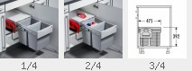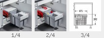 Wählen Sie zuerst hier den gewünschten Montage-Typ Ihres Einbaumülleimers. Wählen Sie dann bei Schrankbreite die Aussenbreite Ihres Unterschrankes aus. Danach können Sie die Zahl der Trennfächer bestimmen.
