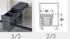 Einbau-Abfallsammler 20 + 10 Liter | 20 und 10 Liter | Montageart: integrierter Auszug | Vollauszug | 2-fach Trennung | Schrankbreite 30 cm | H / B / T: 385 / 254 / 480 mm