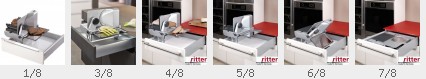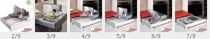 ritter Allesschneider E 118 | Schneidführung linkss | Schrankbreite ab 40cm | Silbermetallic | Schnittstärke 0-14 mm | Zum Einbau auf Schwenkmechaniken in Unterschränke ab 400 mm | Metallausführung