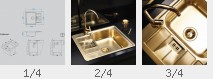 Montage: Einfache Selbstmontage Lieferzeit: 5 Werktage (Mo.-Sa.) ![]() 01. Material Edelstahl Gold 02. Montage Einbauspüle 03. Schrankbreite ab 45 cm 04. Außenmaß 061,5 cm