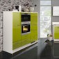 Front: MDF-Trägerplatte mit umlaufend leicht gerundeten Hochglanz-Dickkanten. Oberfläche UV-Lack hochglanz lackiert. Innenseite in Frontfarbton.