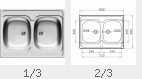 Doppel-Auflagespüle Pyramis | Edelstahl | ohne Hahnloch | reversibel | Höhe 30 mm | Spülmaß: 800 x 600 mm | Beckenmaß je 340 x 400 x 150 mm | für 80 cm Spülenunterschrank