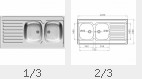 Doppel-Auflagespüle mit Abtropfbecken | Edelstahl | ohne Hahnloch | revesibel | Höhe 30 mm | Spülmaß 1200 x 600 mm | Beckenmaß je 340 x 400 x 150 mm | Schrankbreite ab 800 mm