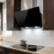 Moderne Kopffreihaube mit leicht zu reinigender Glasplatte in schwarz.