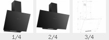 Schräghaube Glas schwarz mit HoodConnect | Breite 60/80/90 cm | LED-Stripe 1x4 W | Bedienung: SensorTouch | Abluft/Umluft | Randabsaugung | LCD Display rot | max. 630 m³/h | max. 68 dB (A)