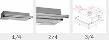 Einbauhaube mit ausziehbarem Flachpaneel 60 oder 90 cm | Edelstahl | EEK D | 2 x Halogen | 2-Leistungsstufen | Bedienung per Druckschalter | Ebm siehe Schablone | max. 366 m³/h | max. 65 dB (A)