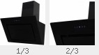 Kopffreihaube Glas schwarz | Schräghaube | Breite 60 cm | 2x1,5 Watt LED-Beleuchtung | Bedienung per Touch-Control | Abluft/Umluft | Digitales Display | max. 610 m³/h | max. 74 dB (A)
