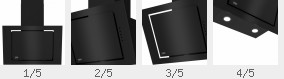 Abzugshaube Glas schwarz mit vertikaler Frontscheibe | Breite 60 cm | 2 x 1,5 Watt LED-Beleuchtung | Bedienung per Touch-Control | Abluft/Umluft | Randabsaugung | max. 454 m³/h | max. 67 dB (A)