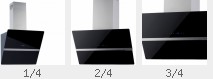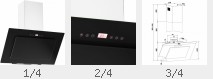 Wandhaube Diagonal Glas schwarz mit Edelstahl | Breite 60/90cm | 3 Leistungsstufen | 1x2 Watt LED | 3000-5500 K | Touch-Control Steuerung | Abluft Ø 150 mm | max. 800 m³/h | max. 59 dB (A)