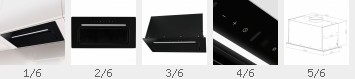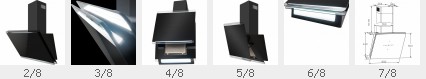 Schräghaube X-type Glas schwarz 60 cm | LED-Beleuchtung 1x12 W | Bedienung: SensorTouch | Abluft/Umluft | Randabsaugung | LCD Display rot | max. 700 m³/h | max. 68 dB (A)