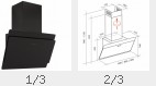 Diagonalhaube Leste 2 Glas schwarz mit Edelstahl | Breite 60/90cm | 3 Leistungsstufen | 2x1,5 Watt LED-Beleuchtung | Touch-Control | Abluft Ø 150 mm | max. 600 m³/h | max. 58 dB (A)