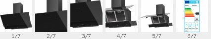 Flachschirmhaube 60 cm mit schwarzem Glaspanel | LED-Stripe 2 x 4 W | Sensor Touch | Abluft/Umluft | 4 Leistungsstufen | LED-Display rot | Abluftstutzen Ø 150 mm | max. 750 m³/h | max. 65 dB (A)