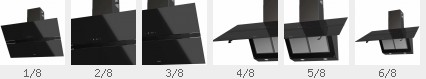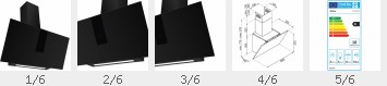 Schräge Wandhaube Miran 60/75/90 cm Glas schwarz | Kopffrei-Design | Randabsaugung | Touch-Control | LED-Beleuchtung | Abluft Ø 150/120 | Leistung max. 650 m³/h | 65 dB (A)| 5 Jahre Garantie