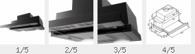 Einbauhaube Flachlüfter 60 oder 90 cm | ausziehbarer Schirm | Edelstahl | 2x1,3 W LED | 3 Leistungsstufen mit Schiebeschalter | Breite 60/90 cm | Ebm. BTH 502/802 x 264 x 250 mm | max. 700 m³/h | max 59 dB (A)