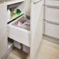 Durch die Installation kugelgelagerter Schienen in Schubladen und Auszügen ist zum Schließen der Schublade nur noch ein Bewegungsimpuls notwendig. Die Schublade schließt sich zum einen auf den letzten Zentimetern von selbst. Zum anderen bremst sie sich bei zu viel Schwung ab, sodass ein lautes Geräusch beim Schließen verhindert wird.