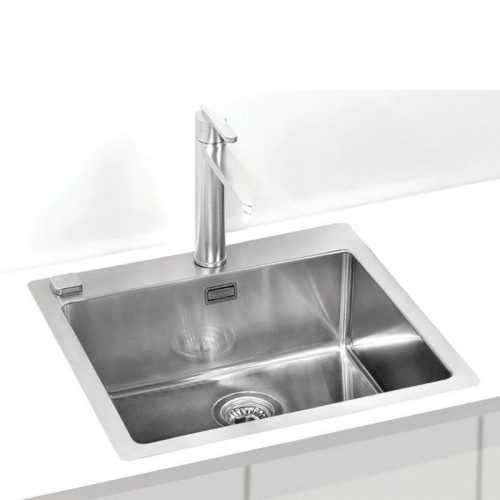 Einbau und flächenbündige Spüle Pure 70 | 2 Hahnlöcher | inkl. Korbventil rund | Außenmaß 565 x 525 mm | Einbaumaß 545 x 509 mm | Beckentiefe 195 mm | Schrankbreite ab 600 mm