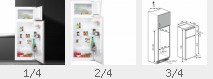 Einbau-Kühl-/Gefrierkombination 223 Liter | Nische 146 cm | EEK F | Wechselbarer Türanschlag | Schlepptürtechnik | LED Illumination | Bruttoinhalt 223 Liter | Abm. HxBxT 1448 x 540 x 545 mm