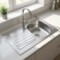 Die Einbauspüle mit 1 Becken und Abtropffläche überzeugt durch modernes Design und hochwertige Verarbeitung. Das Spülbecken ist reversibel einbaubar. Ein Überlauf ist im Becken vorhanden, so dass kein Wasser überlaufen kann. Um die Dichtigkeit gegenüber allen Flüssigkeiten während des Einbaus der Spüle zu gewährleisten, und auch einen möglichen Wasserschaden an der Arbeitsplatte zu vermeiden, ist es wichtig eine Dichtung zwischen Spüle und Arbeitsplatte aufzubringen. Edelstahl-Einbauspüle ist mit einer werksseitig aufgebrachten Polyurethan Dichtung ausgestattet. Dadurch wird die Montage einer Einbauspüle viel einfacher und anwendungsfreundlicher.