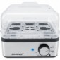 Elektronischer Edelstahl-Eierkocher für maximal 8 Eier. Mit zwei Pochiereinsätzen. Durch elektronische Steuerung entfällt das umständliche Messen der Wasserfüllmenge.