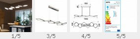 Cingue LED 6-flammig | Pendelleuchte | Edelstahlfarbig eloxiert | ESG-Glas opal | Dimmfunktion | max. 106 Lumen/Watt bei 6500 K kaltweiss | inkl. Fernbedienung und Konverter | Länge 1362 mm