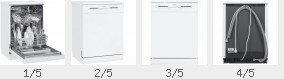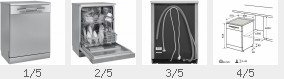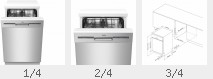 Die Spülgeräte sind erhältlich in der Breite 45 cm und 60 cm. Die Ausstattung unterscheidet sich durch die verschiedenen Spülprogramme, das Betriebsgeräusch, Fassungsvermögen, Display und die Effizienz beim Spülen.