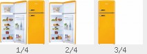 Kühl-/Gefrierkombination 144 cm Höhe Retro Design gelb | EEK E | Nutzinhalt Kühlen/Gefrieren 162/44 Liter | LED-Beleuchtung | Chrom Flaschengitter | Abm. HxBxT: 144,0 x 55,0 x 61,5 cm