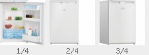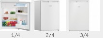 Kühlschrank freistehend 84 cm | Tischgerät | Farbe weiss | EEK F | Nutzinhalt Kühlen 128 Liter | LED Illumination | Türgriff / Griffmulde | Türnschlag wechselbar | HxBxT: 84 x 54 x 59 cm