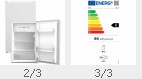 Kühlschrank freistehend mit Gefrierfach 84 cm | Farbe weiss | EEK E | Nutzinhalt Kühlen/Gefrieren 101/13 Liter | LED Illumination | Türnschlag wechselbar | MinFrost | HxBxT: 84 x 54 x 59 cm