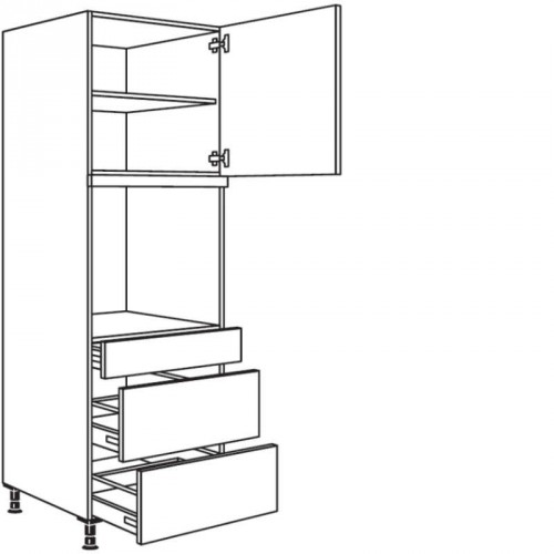Hochschrank für Geräte-Umbauten, Backofen 590 mm Nische, mit 2 Auszügen | 600 mm Breite | inkl. Türdämpfung | 1 Schubkasten | Korpus HxT 2016x561 mm | Sockelhöhe 70,100,150 oder 200 mm