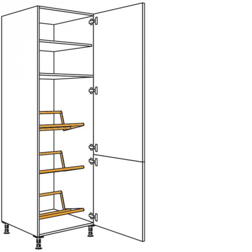 Hochschrank für Getränkekisten 2160 mm Höhe | mit 1 verlaschte Tür | 600 mm Breite | inkl. Türdämpfung | 3 Träger für Kisten | Korpus HxT 2160 x 561 mm | 1 Einlegeboden | Sockelhöhe 70,100,150 oder 200 mm