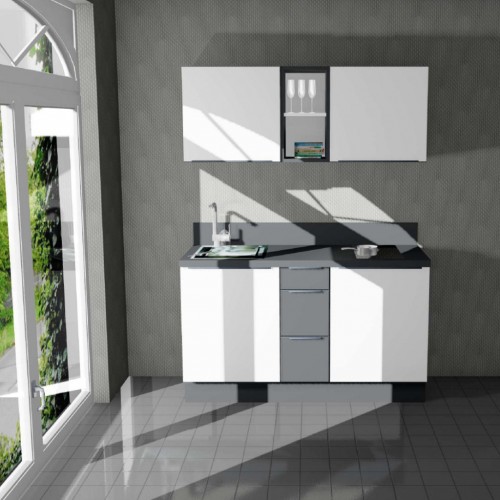 Impuls Miniküche mit Induktionsfeld 150 cm | m. Dämpfung | 3 Unterschränke, 2 Hängeschränke | inkl. Arbeitsplatte, Sockelleisten, Spüle und Griffe | komplett variierbar in Breite, und Ausstattung