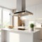 Inselabzugshaube 90 cm | Glas mit Edelstahl | schwarzer Satinglaseinsatz | 4 Stufen Touch Display | 4x1,5 Watt LED mit 4000 K | Breite 90 cm | max. 850m³/h | max. 62 dB (A)