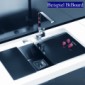 Die einzigartige BiBoard-Spülenabdeckung aus schwarzem, gehärtetem und somit bruchsicheren Glas hat zwei Funktionen: mobile Abtropffläche oder Spülenabdeckung.