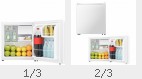 Minikühlschrank, Kühlbox freistehend | weiss | 45 Liter Kühlvolumen | Energieklasse E | Türanschlag wechselbar | 2 Türablagen | Vorderfüße Höhenverstellbar | Abm. HxBxT 50,0x44,5x46,8 mm