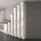 Oberfläche: Hochglanz lackiert. Innenseite weiß, melaminharzbeschichtet.