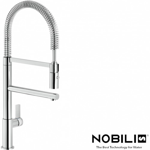 Nobili Flag Profi-Spültischmischer mit schwenkbarer Brause | Chrom glänzend | Neoperl® Perlator | Bohr Ø 35 mm | SPX® Edelstahl-Verbindungsschläuche | Ecofresh | Watersaving | Brighting