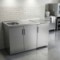 Pantryküche aus Edelstahl 150 cm mit Kühlschrank | inkl. Ab- und Überlaufgarnitur | Hängeschrank, Warmwasserspeicher, Abfallsammler, Massekochplatten wählbar | Made in Germany