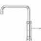 Quooker Classic Fusion Square PRO3 Kochend-Wasser-Hahn und Mischbatterie in einem Gerät, mit kindersicherem Doppel-Druck-Dreh-Bedienknopf und geradem Hahnauslauf. Darüber hinaus bietet er Ihnen alle bekannten Vorteile: er spart Energie, Wasser, Zeit und Platz und ist sicher im Gebrauch.