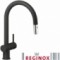 Reginox Flint Einhandmischer | mit schwenkbarem Auslauf 360° | Schwarz, weiss | Keramikkartusche | ausziehbarem Auslauf | Seitlicher Hebel | Hochdruck | inkl. Anschlussschläuche