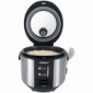 Reiskocher mit 1,8 Liter Inhalt . Einfache „Ein-Knopf“-Bedienung mit Warmhaltefunktion, Antihaftbeschichtetem Innentopf, Edelstahlgehäuse, Kontrolllampe, Dampfventil, Scharnierter Deckel mit Verschluß, Tragegriff und Dämpfeinsatz für Gemüse oder Fisch.