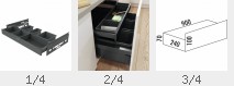 Einbau-Aufbewahrung Cox Base-Board(R) 900 | anthrazit | Aufbewahrungsboxen | 2x2,7 + 2x1,2 Liter | Vollauszug | Softeinzug und Dämpfung | Schrankbreite ab 900 mm | H / B / T:100/900/240 mm