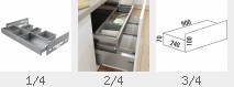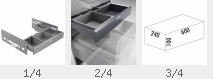 Einbau-Aufbewahrung Cox Base-Board(R) 500 | silber | Aufbewahrungsboxen | 2,7 + 1,2 Liter | Vollauszug | Softeinzug und Dämpfung | Schrankbreite ab 500 mm | H / B / T: 100 / 500 / 240 mm