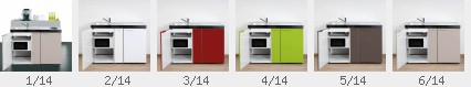 Miniküche 120 cm breit Metall mit Mikrowelle | 20 cm breiter Stauraum mittig | in 6 Farben wählbar | Kochfeld, Kühlschrank, Hängeschrank, Armaturen und Überbau wählbar | Made in Germany