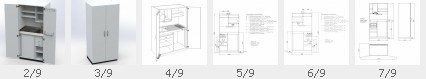 Büroküche Küchencenter mit Drehtüren PKD 120 cm breit | Dekore wählbar | Kühlschrank, Geschirrspüler, Mikrowelle, Dunstabzug, wählbar | Abm. 1956x1200x650 | Made in Germany
