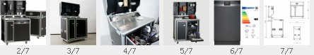 Kofferküche pro-art kitcase mit Geschirrspüler - mobile Küche im Flightcase auf Rollen | HxBxT geschlossen/geöffnet: 127/174,5 x 104 x 64,5/80 cm | Arbeitshöhe 101 cm | Made in Germany
