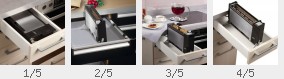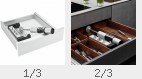 Vom Besteckkasten über den Schubladen-Gewürzhalter, bis hin zum Einbautoaster und dem Ausziehtisch, sorgen professionelle Schubladeneinrichtungen und Einrichtungen für Auszüge stets für Komfort und Ordnung.