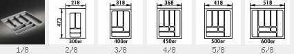 Besteckeinsatz Passend für Grass Auszüge Leicht, Häcker, Zeyko | Höhe 50 mm | Schrankbreite 300-900 mm | silbergrau