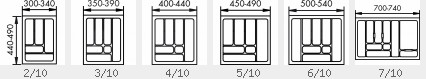 Besteckeinsatz 2 Farbe grau | Rand schneidbar | Höhe 50 mm | Schrankbreite 400-600 mm