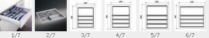 Besteckeinsatz mit Quereinteilung, durch den flexiblen Einsatz der Kunststofftrenner sind verschiedene Facheinteilungen möglich.