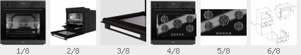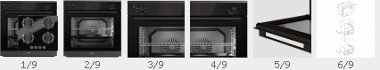 Einbaubackofen pureBlack mit Gas-Kochfeld 90cm 5-flammig | 80 Liter | Heißluft | 9 Funktionen | 2 fach Verglasung | Design-Bedienknebel | Abm. BTH 890x520x40 mm | Ausschnitt 840 x 500 mm